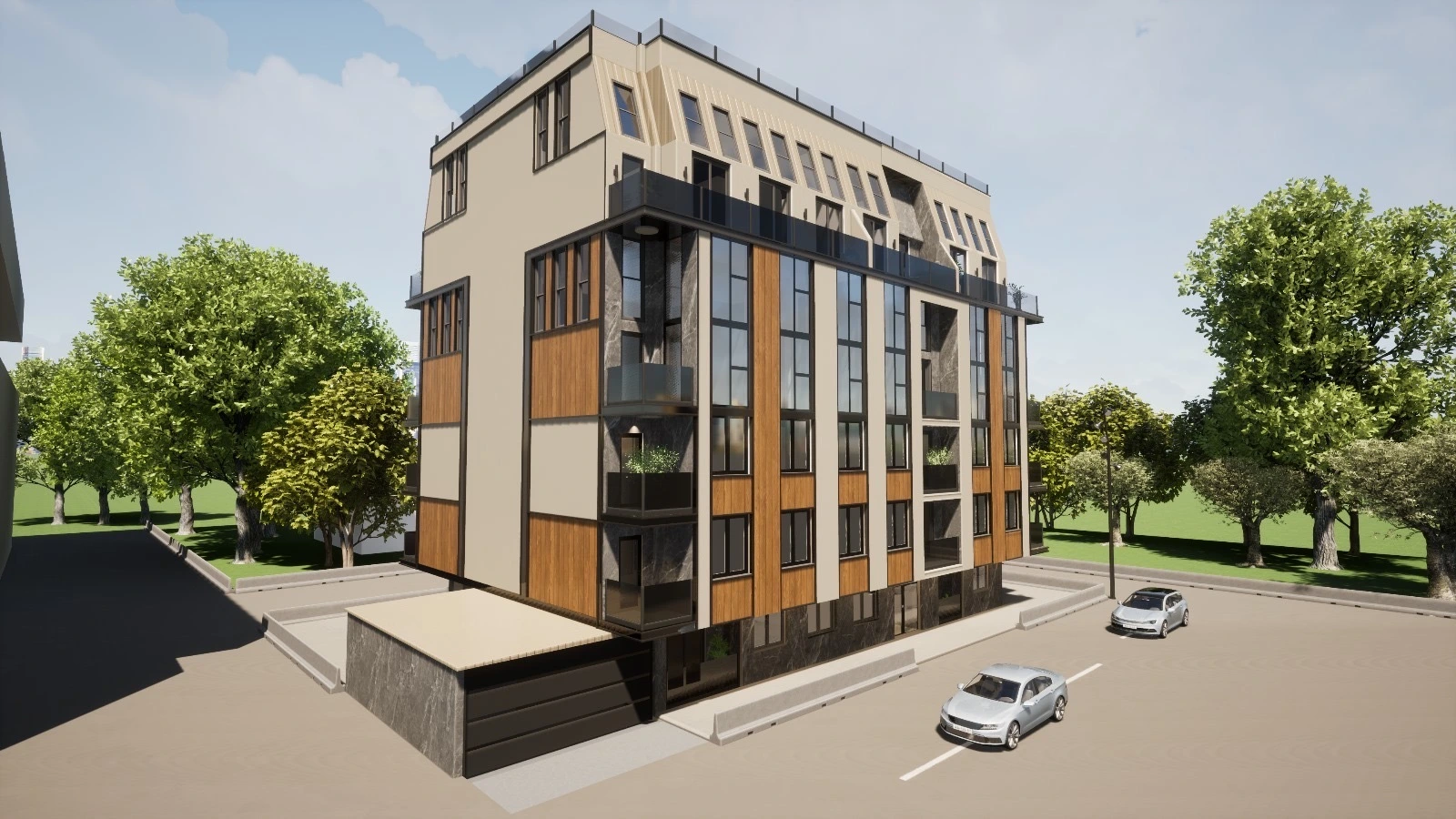 Сместен во срцето на урбаниот дел на градот, овој нов проект е одличен спој на функционалност и современ дизајн. Станбено-деловниот објект нуди елегантни и пространи апартмани, како и деловни простори кои ги исполнуваат сите потреби на современите компании. Со внимателно избрани материјали и внимателно планирање на просторот, проектот гарантира високи стандарди на квалитет и удобност. Локацијата на ул. „Народни Херои“ е одлично поврзана со главните патни правци и инфраструктура, што го прави објектот идеален за живот и работа.